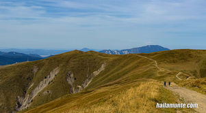 Urcam pe Saua Baiului iar in spatele nostru isi face aparitia langa Masivul Postavarul si Masivul Piatra Mare iar in spate in plan indepartat se vede Magura Codlei.