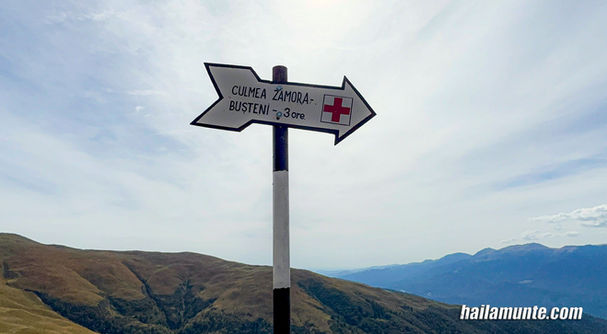 Ajungem la un marcaj ce ne informeaza ca putem sa mergem pana in Busteni, pe culmea Zamora. Noi, insa, continuam catre Varful Baiul Mare.